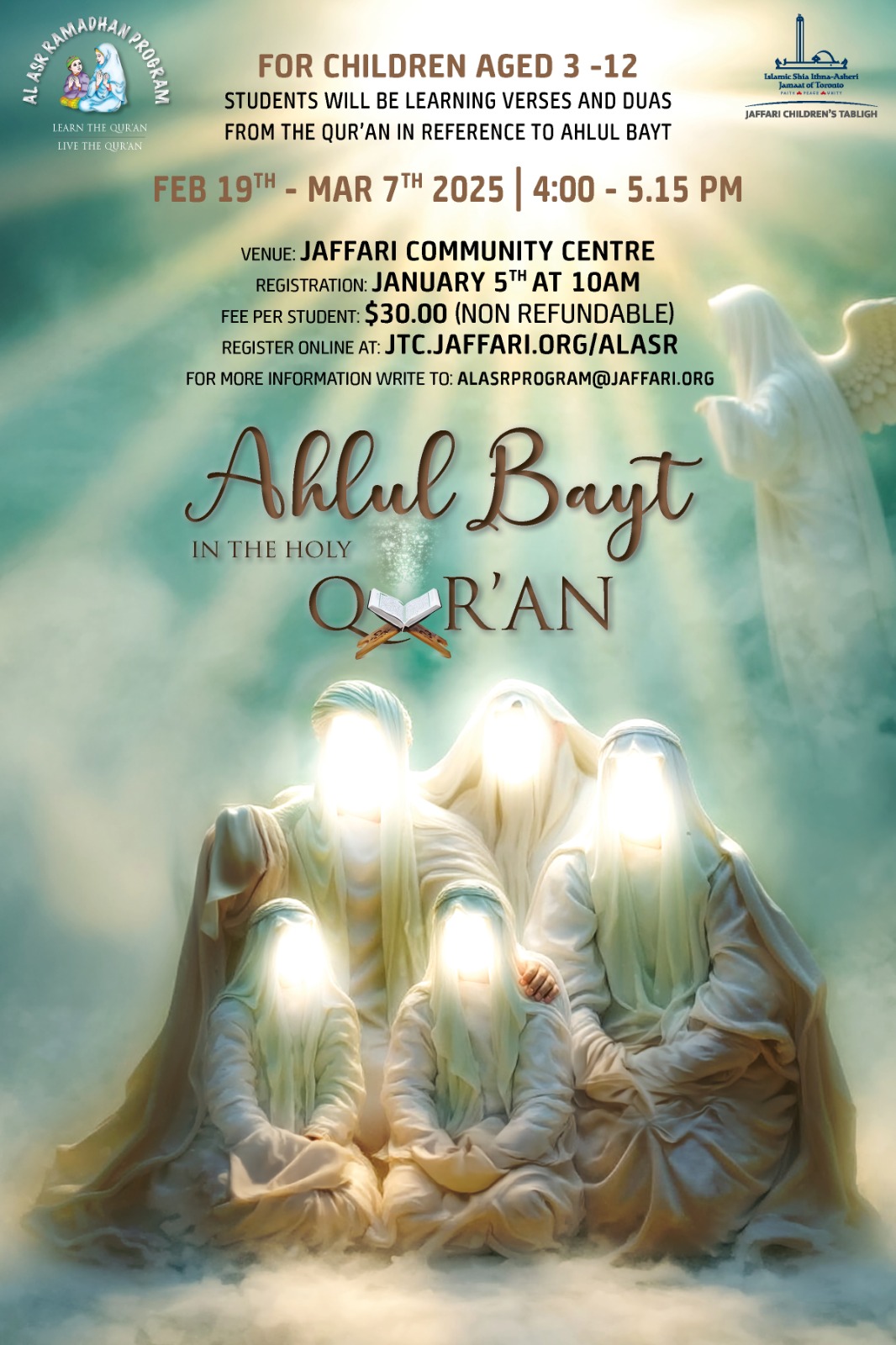 Students will be learning verses and duas from the Qur’an in reference to the Ahlul Bayt. Registration will begin on Monday, January 5th at 10:00 AM. Limited spots available. Register using the links below.