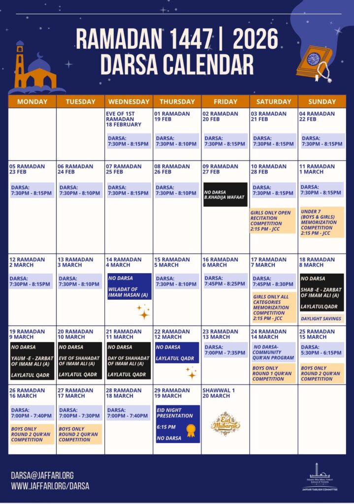 For queries please email darsa@jaffari.org