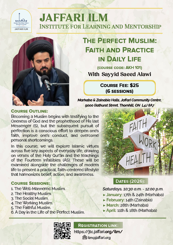 The Jaffari Tabligh Committee is pleased to announce Jaffari ILM – Institute for Learning and Mentorship, structured learning via short and long term courses. We are pleased to announce the following course is as follows: