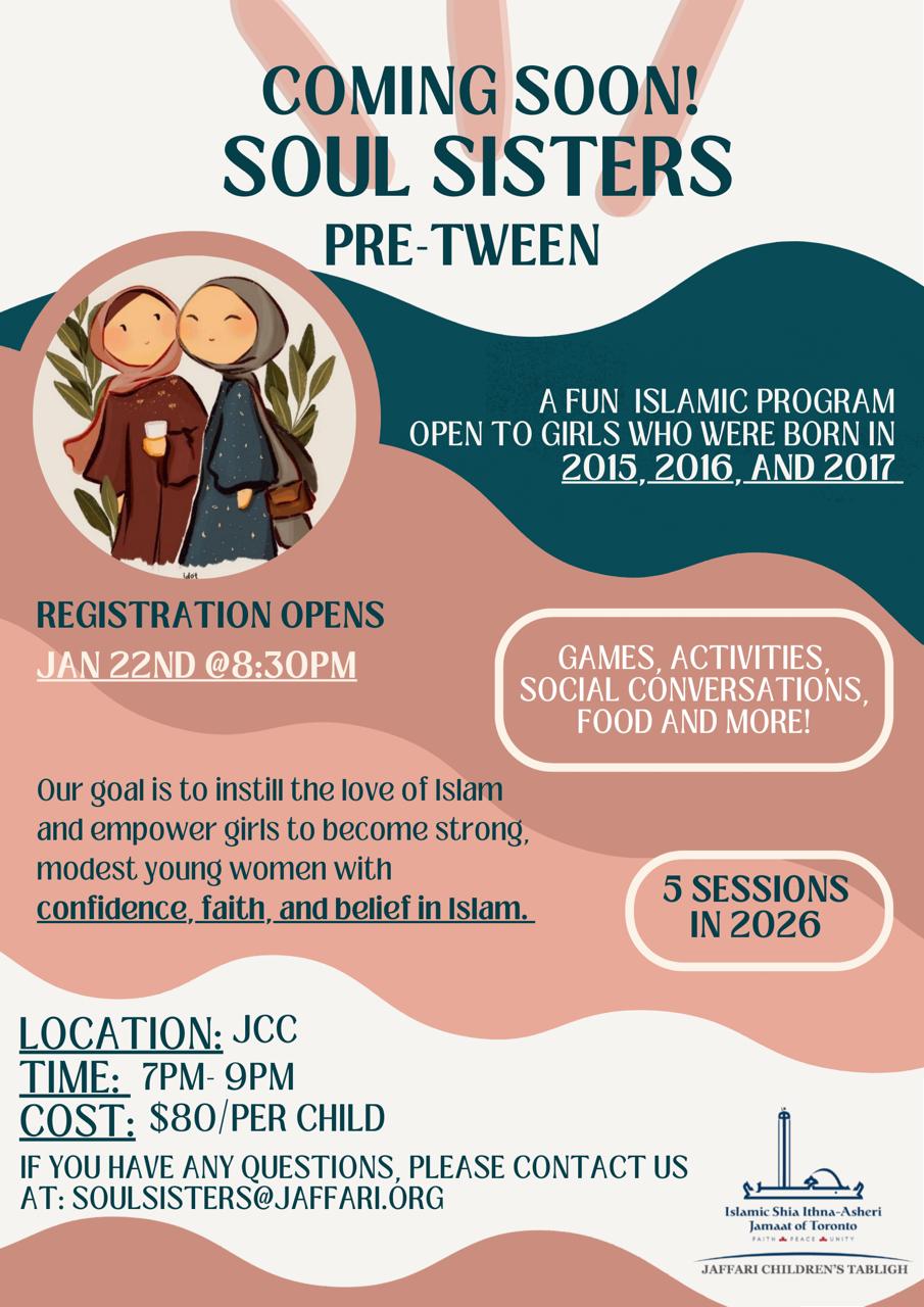 Soul Sisters is a program for girls aged 8 to 11. It is a fun and safe space for our girls to interact with their peers who have similar Islamic beliefs and values.